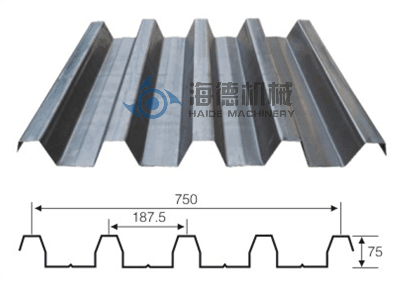 該機生產的樓承鋼板,用于樓層樓面板,具有波峰高、強度大等特點,而且生產自動化程度高,成本低廉。