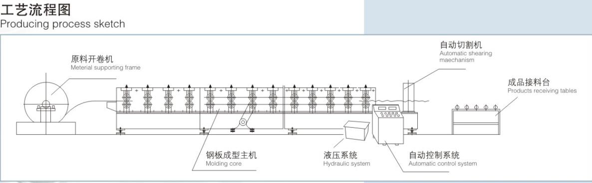 該機生產的鋼樓承板形狀簡潔、波度大、強度高、安裝時鋪置點焊鋼筋網后與混凝土現場澆灌結合,粘合性好。在高層建筑上既可以省去鋼模板又可以減輕樓層承載,在達到同等承受能力的前提下,使工程用鋼量減少,從節(jié)省投資。
