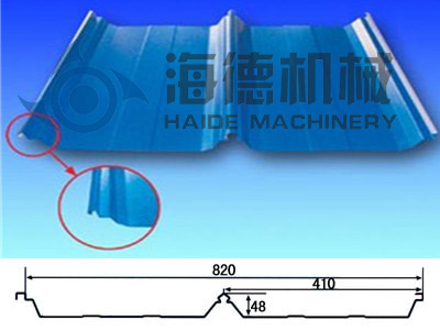 經(jīng)該機輥軋成型的壓型板屬咬口屋面板,具有波峰高、強度大、無螺釘鎖邊咬口安裝,搭接安裝安全可靠,防水抗臺防暴性能強等特點,而且生產(chǎn)自動化程度高,成本低廉,經(jīng)久耐用,重量輕,拼裝組合自由方便。